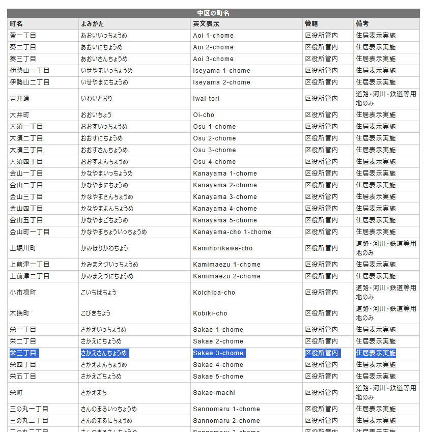 この方法でも栄三丁目は住居表示実施になっていることが確認できます。
