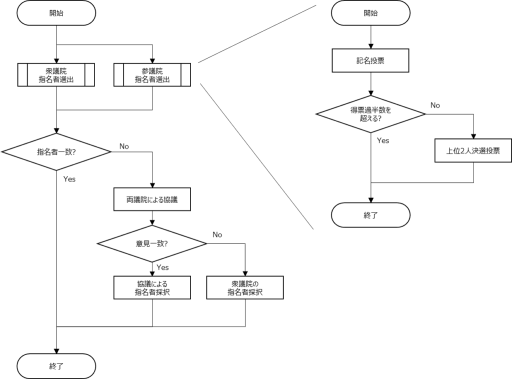 分かりやすくするため、総理大臣を決定するフローチャートを作成しました。